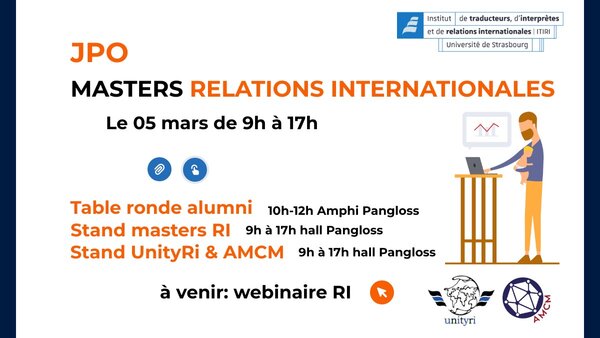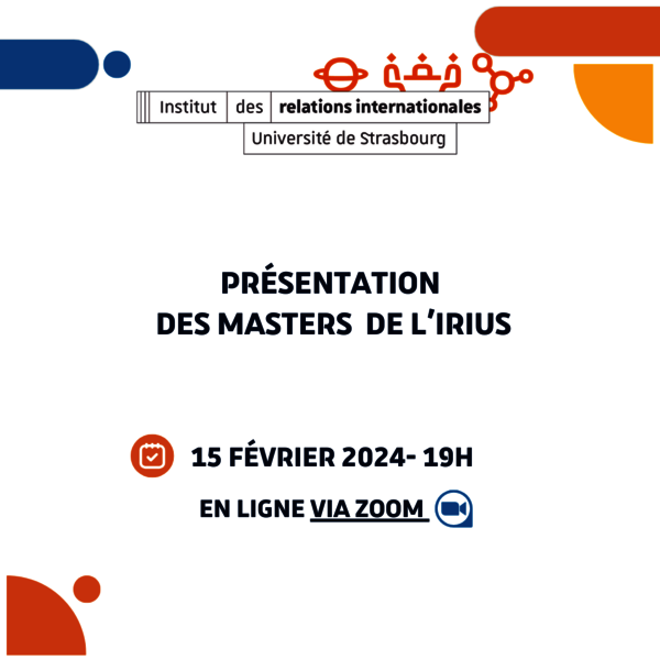 Venez découvrir les masters Relations Internationales de l’ITIRI lors de notre webinare du 9 mars ! Des alumni, des étudiants actuels, les responsables des parcours seront là pour répondre à toutes vos questions alors rejoignez-nous ! Inscrivez-vous ici